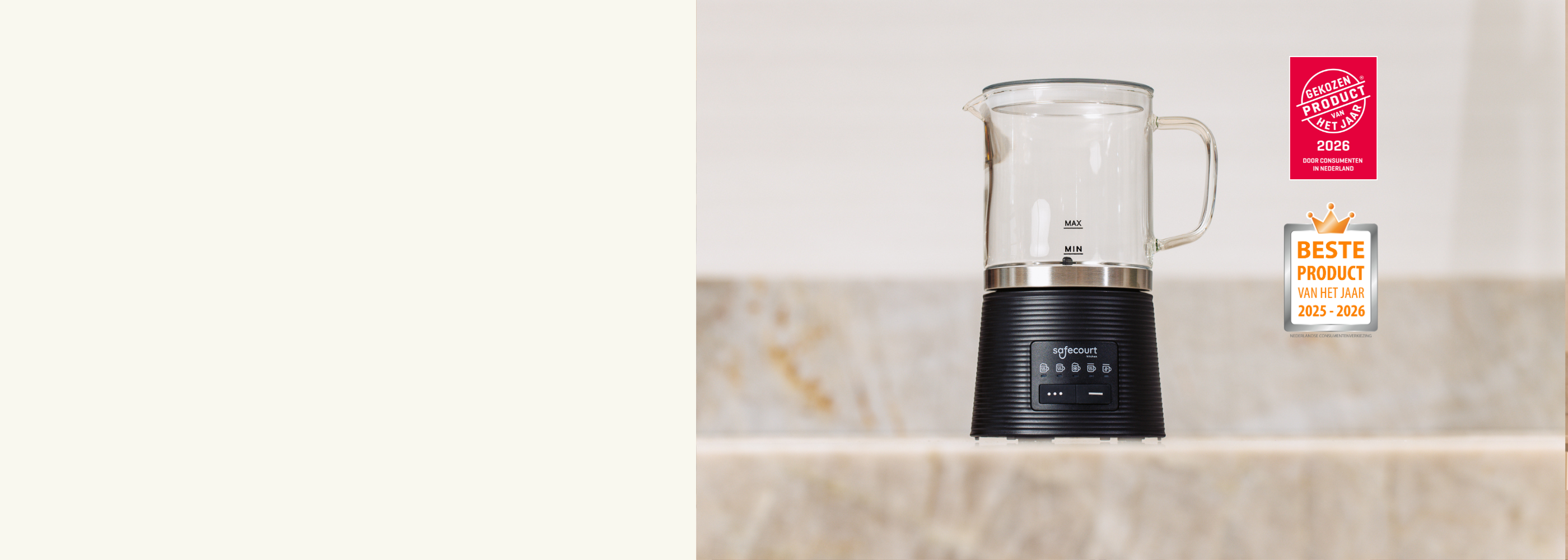 Safecourt heeft meerdere melkopschuimers van premium digitaal tot compact multifunctioneel. Ze zijn allemaal PFAS-vrij, kunnen warm én koud schuimen, én maken allemaal perfecte warme chocolademelk....
