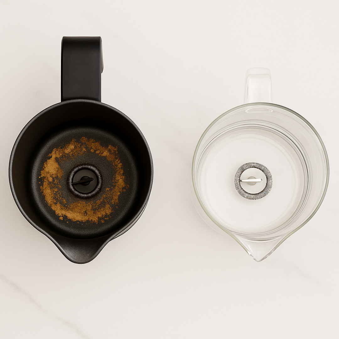 In veel melkopschuimers zit een coating van Teflon of andere PFAS-stoffen. Wat begint als een handig laagje, kan bij dagelijks gebruik schadelijke stoffen of microplastics loslaten. Onze melkopschuimer werkt anders: met een uitneembare glazen kan zonder giftige coatings. Wel het volle schuim, niet de troep.
