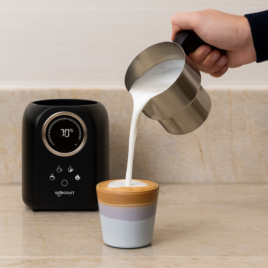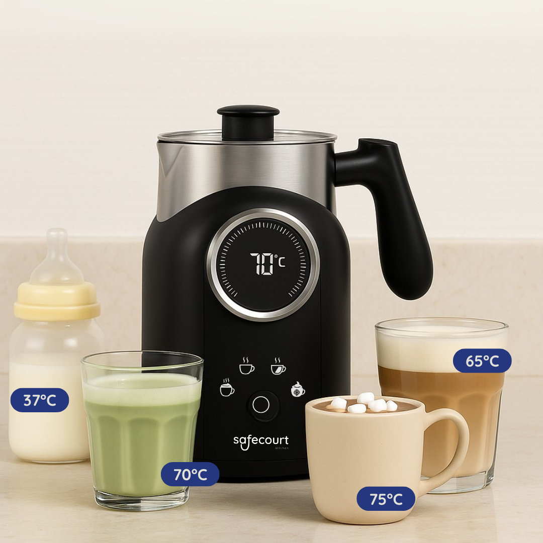 Safecourt heeft meerdere melkopschuimers van premium digitaal tot compact multifunctioneel. Ze zijn allemaal PFAS-vrij, kunnen warm én koud schuimen, én maken allemaal perfecte warme chocolademelk....