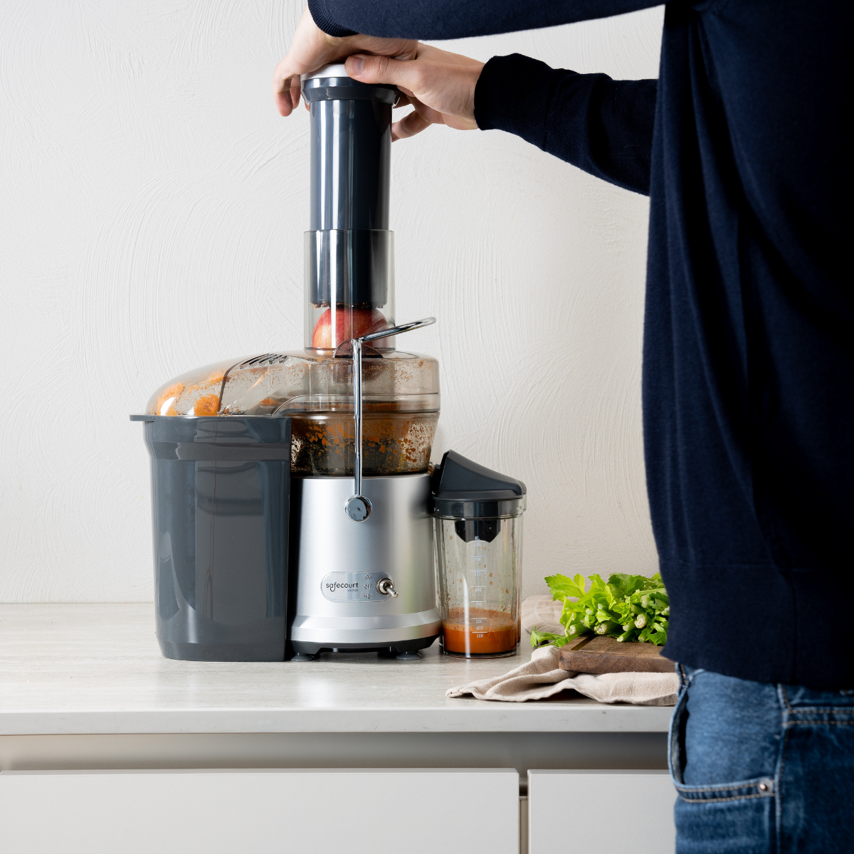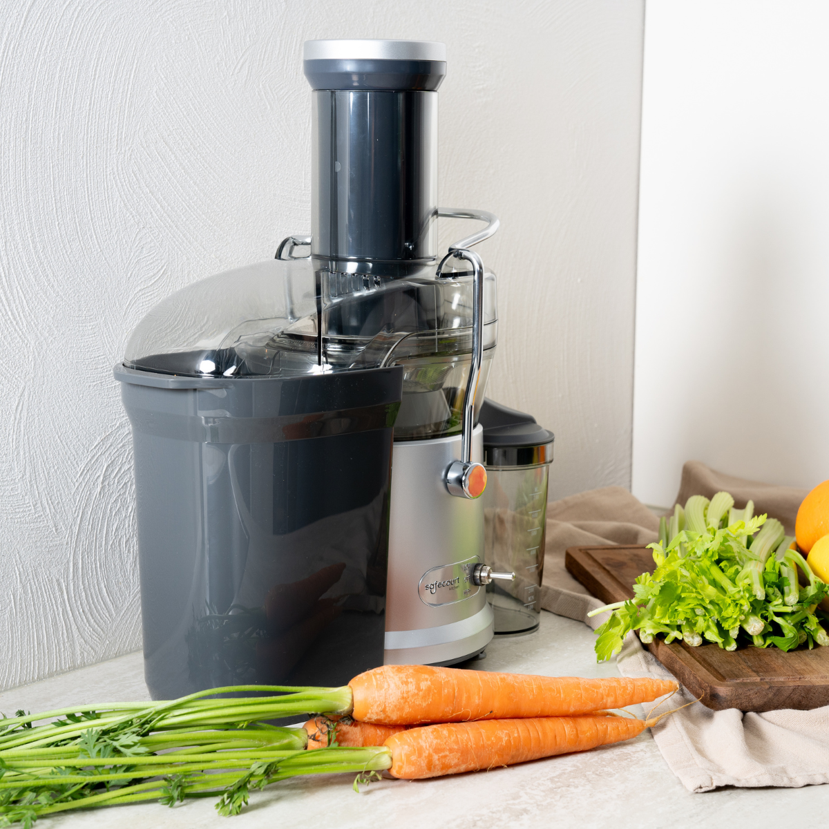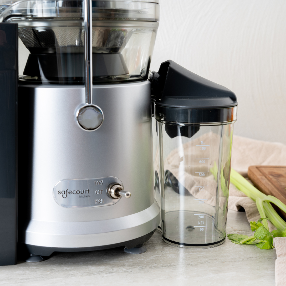 Den 700 ml saftbehållaren fångar upp din färska saft utan förlust av vitaminer och näringsämnen. Tack vare den läckagesäkra hällpipen häller du enkelt upp utan spill. Tillverkad av högkvalitativt BPA-fritt material, så att du kan njuta säkert och hälsosamt varje dag!