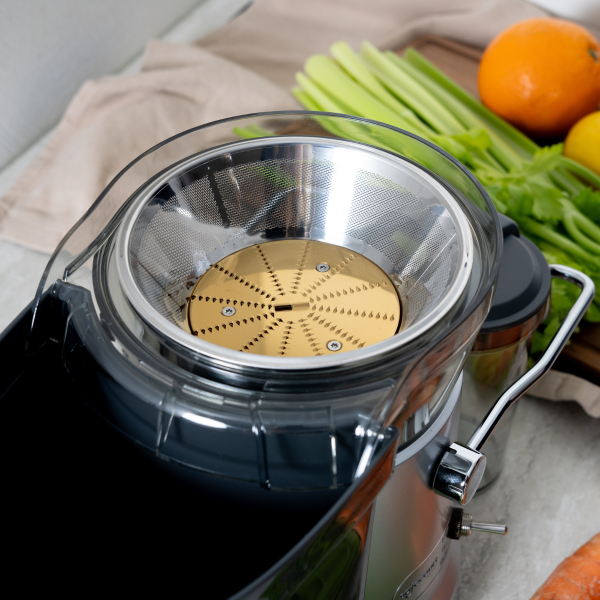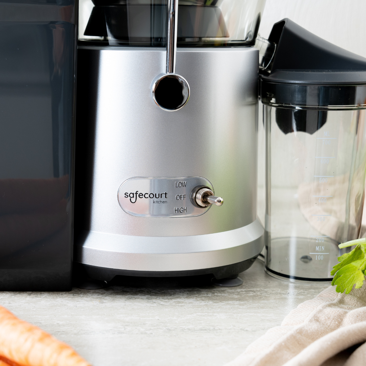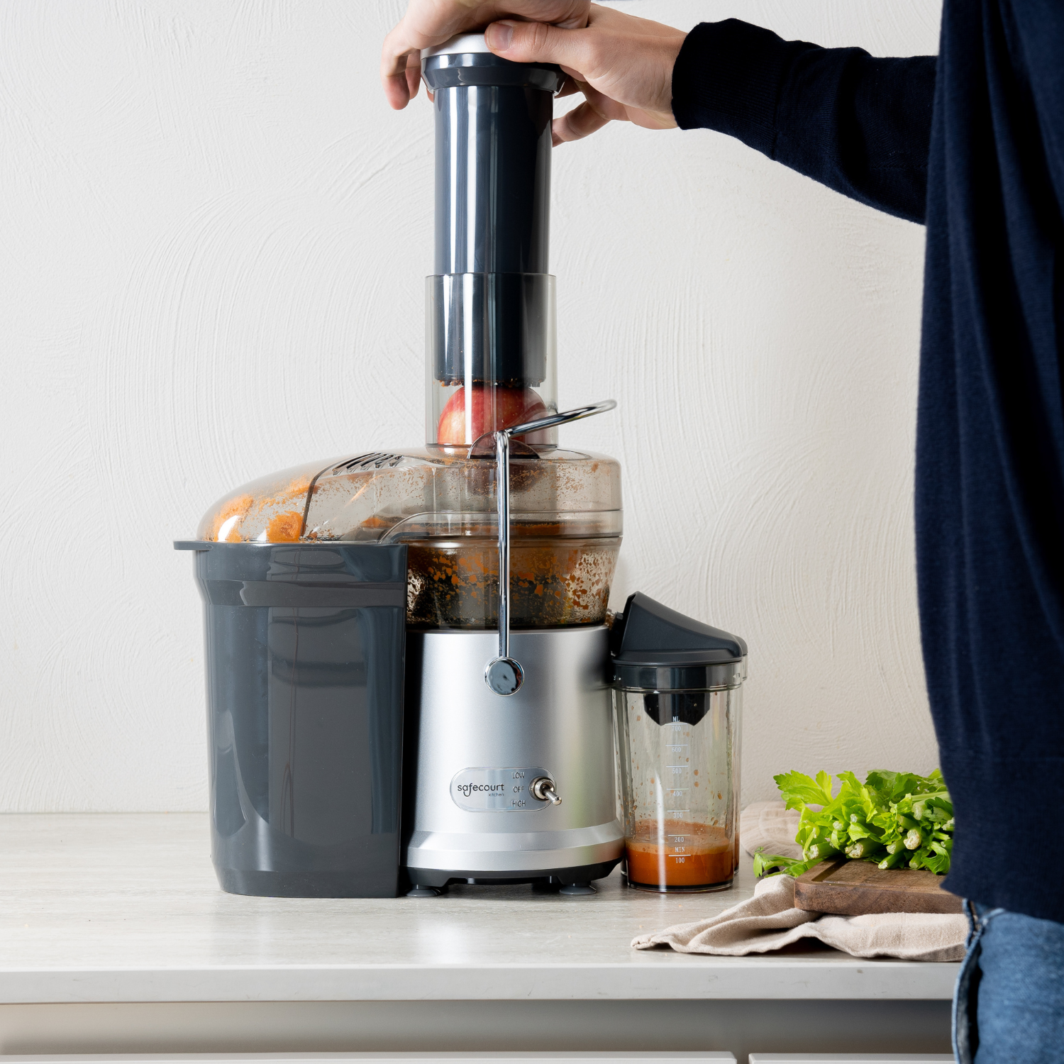 Den 700 ml saftbehållaren fångar upp din färska saft utan förlust av vitaminer och näringsämnen. Tack vare den läckagesäkra hällpipen häller du enkelt upp utan spill. Tillverkad av högkvalitativt BPA-fritt material, så att du kan njuta säkert och hälsosamt varje dag!